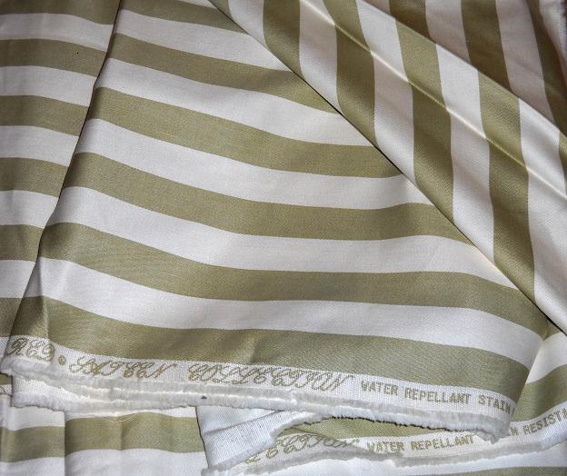 This KIWI-ish GREEN and WHITE STRIPED "REMNANT" is almost 4-YARDS. Although IT doesn't "Say", I Believe that IT *IS* COTTON.